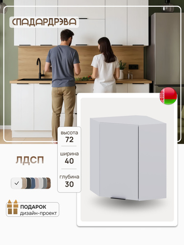 Кухонный модуль навесной угловой, 40 см, Сканди Белый, ЛДСП, СпадарДрэва