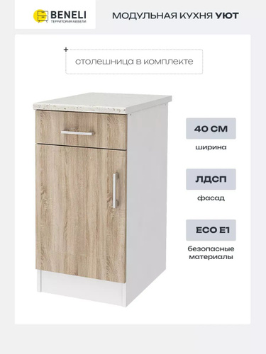 Шкаф кухонный напольный 40х60х85 см Beneli УЮТ, Белый/Дуб сонома, 1 шт.