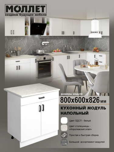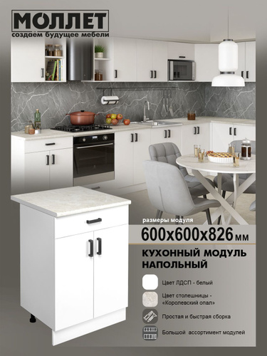 Beneli шкаф кухонный напольный 50х60х85 см УЮТ, Белый, 1 шт.