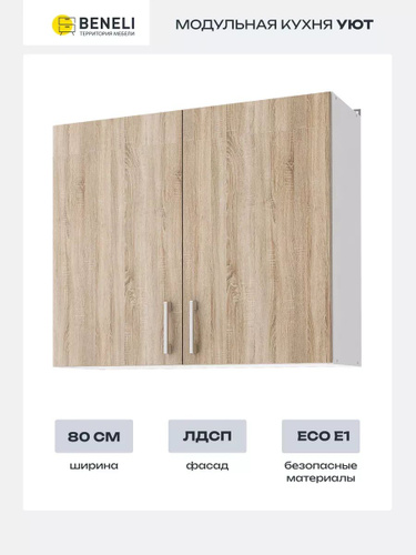 Шкаф кухонный навесной 80х31.7х72 см Beneli УЮТ, Белый/Дуб сонома, 1 шт.