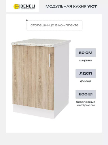 Шкаф кухонный напольный 50х60х85 см Beneli УЮТ, Белый/Дуб сонома, 1 шт.
