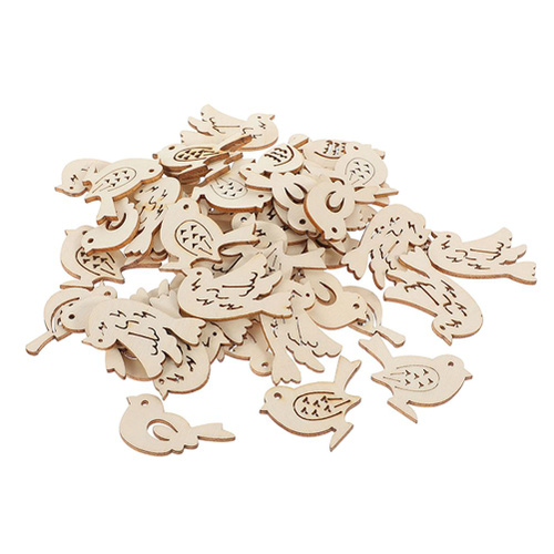 Набор из 100 деревянных бежевых птиц для творчества, подвесные неокрашенные фигурки для декора и рукоделия