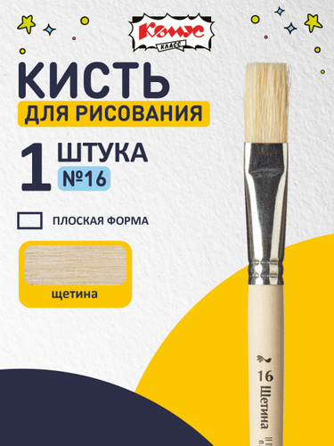 Кисть для рисования Комус Класс, плоская, щетина, №16