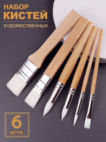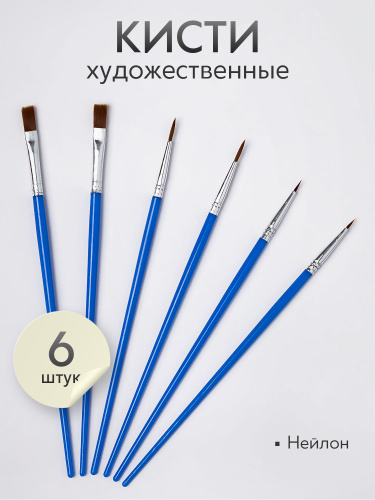 Кисти для рисования акварелью, гуашью, акрилом, маслом. Набор 6 шт.