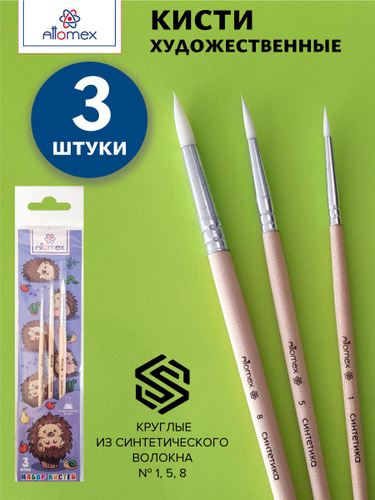 Кисти художественные, синтетический ворс, 3 штуки