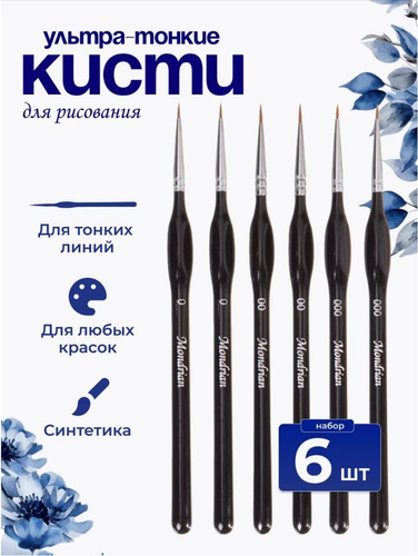 Кисти ультра тонкие для рисования 6 шт художественные