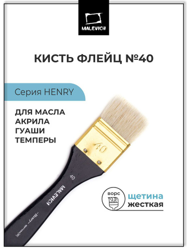 Кисть для рисования щетина Henry Малевичъ, кисти художественные, флейц №40