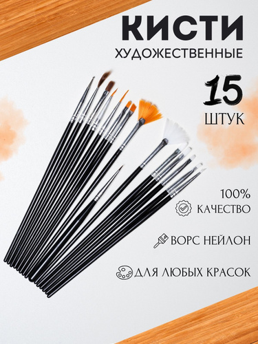 Набор кистей для рисования и живописи разной формы 15 штук
