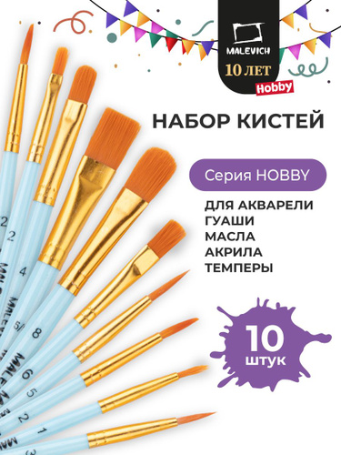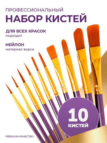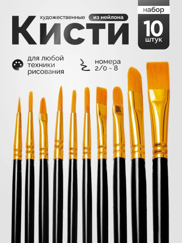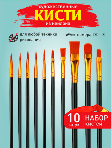 Art. S Набор кистей для рисования Круглая, Плоская, 10 шт.