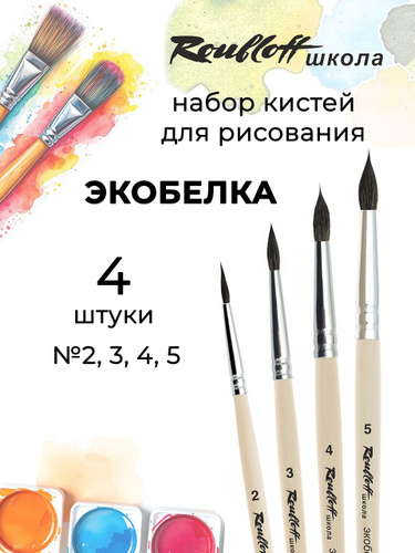 Roubloff школа № 1 Набор кистей для рисования, 4 кисти экобелка