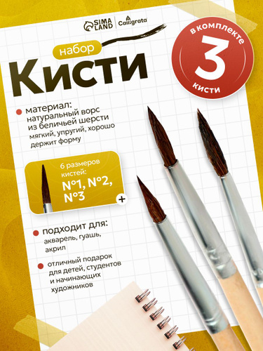 Набор кистей Calligrata, белка, круглые, 3 шт (№1-3)