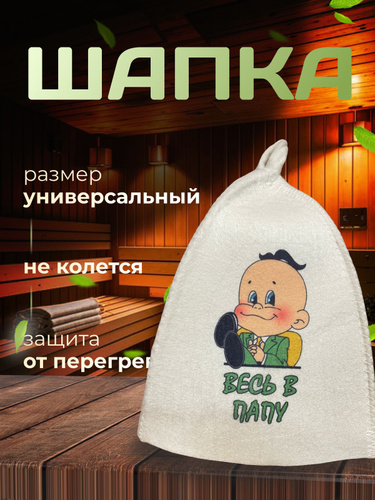 Детская банная шапка с рисунком "Весь в папу" / Шапка для бани и сауны