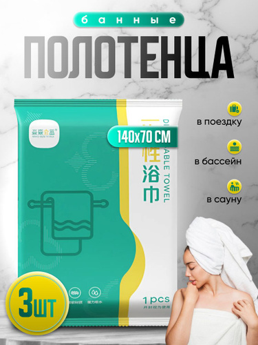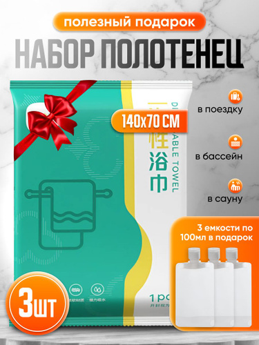 Одноразовое большое банное хлопковое полотенце (простыня) комплект (набор) 3 упаковки + 3 емкости для шампуня