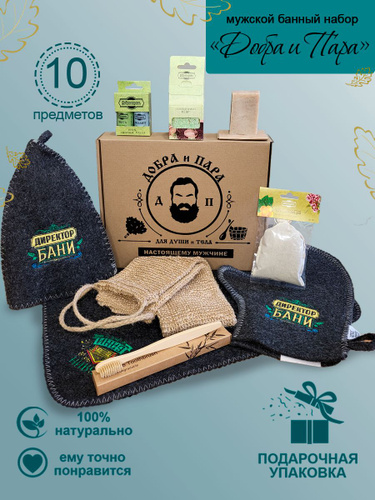 Подарочный набор на Новый год и День Рождения! Набор для бани и сауны мужской подарочный "Батя" с эфирными маслами, мылом и запарками мужу коллеге другу папе