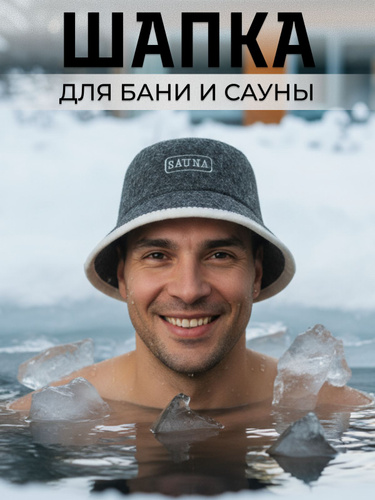 Шапка для бани и сауны "Панама" из войлока, банная шапка с вышивкой, фетр серый
