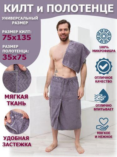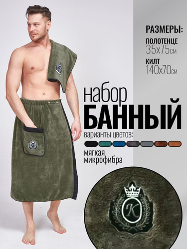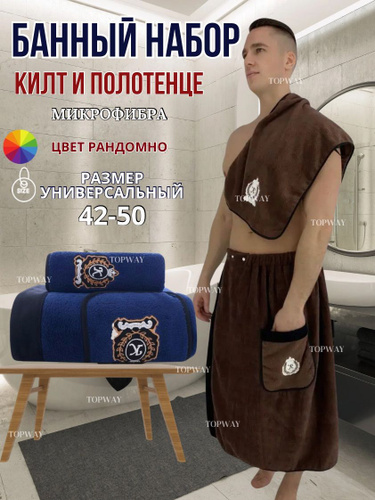 Подарочный набор на Новый год 2026 Килт для бани или сауны и полотенце для рук или лица для мужчин. Новогодние подарки парню, папе, мужу, другу, брату