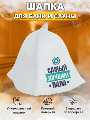 Шапка для бани и сауны "Самый лучший папа", мужская с принтом белая
