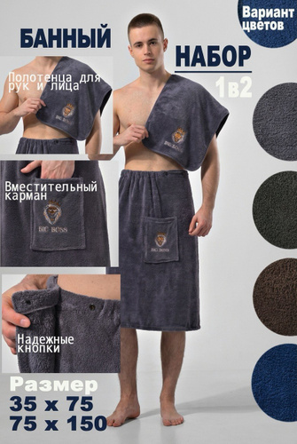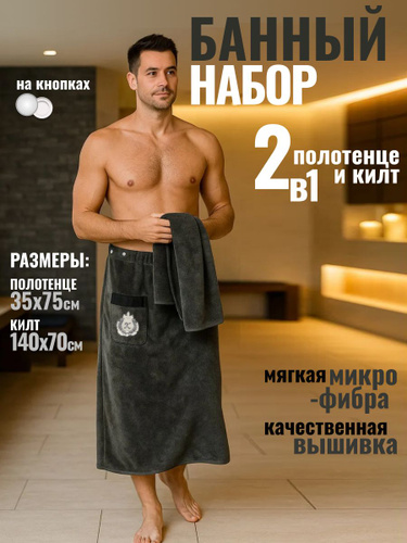 Мужской набор полотенец для бани и сауны. Килт+полотенце для лица Графитовый