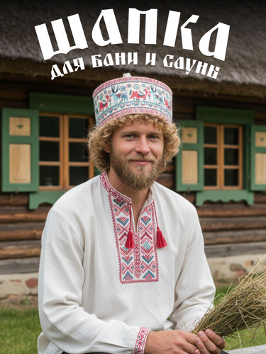 Шапка банная с принтом "Лисы-лоси" для бани и сауны, войлок