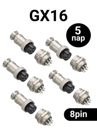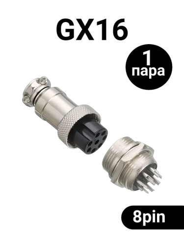 Авиационный разъем GX16 штекер + гнездо (8 pin, 8 контактов, папа+мама, 2 пары)