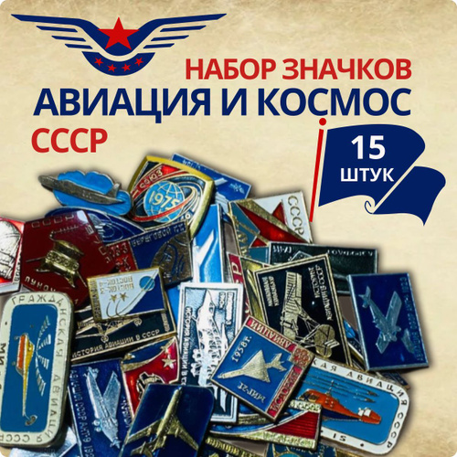 Набор коллекционных значков СССР "Авиация и космос", 15 шт, нагрудные, металлические