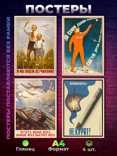 Постер "Постеры А4 Агитплакат СССР авиация и космос, 4 шт.", 29.7 см х 21 см