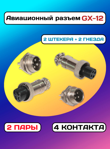 Авиационный разъем GX12 (2 шт. мама + 2 шт. папа) - 4 контакта, 2 пары