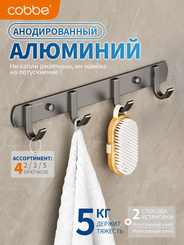 Крючки без перфорации cobbe из авиационного алюминия, 4 крючка, прочная дверная вешалка из вискозы, настенное полотенце для кухни и туалета
