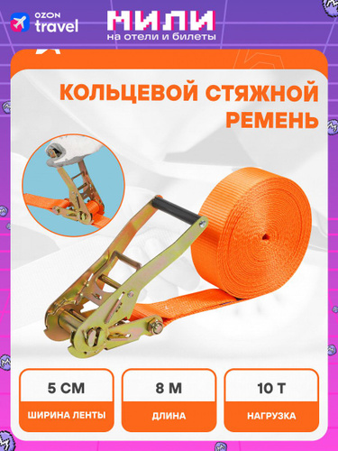 Ремень крепления груза с храповиком 8 м, 10 т кольцевой (AIRLINE)