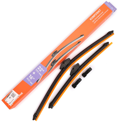 Щетки стеклоочистителя 550/410 мм (22/16) бескаркасные, 2 шт. 2 адаптера (AWB-BK-550-400K)