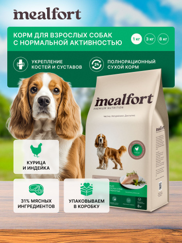 Корм сухой для собак с курицей и травами Mealfort 1кг