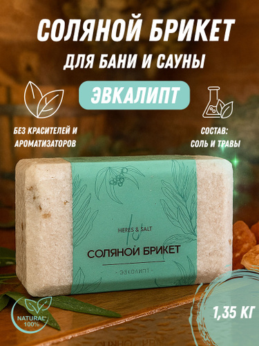 Соляной брикет 1,35кг для бани и сауны с травами "Эвкалипт" Herbs&Salt соль для бани натуральная