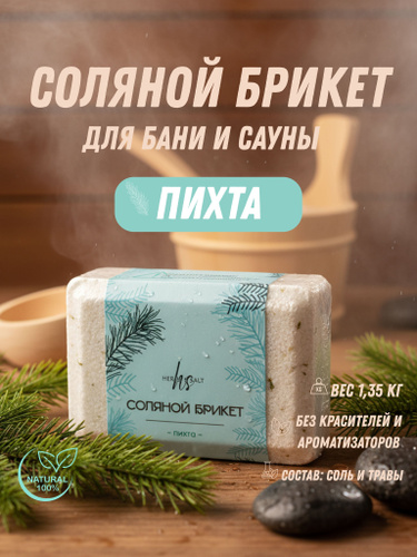 Соляной брикет 1,35кг для бани и сауны с травами "Пихта" соль для бани натуральная