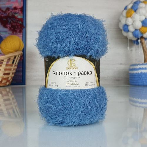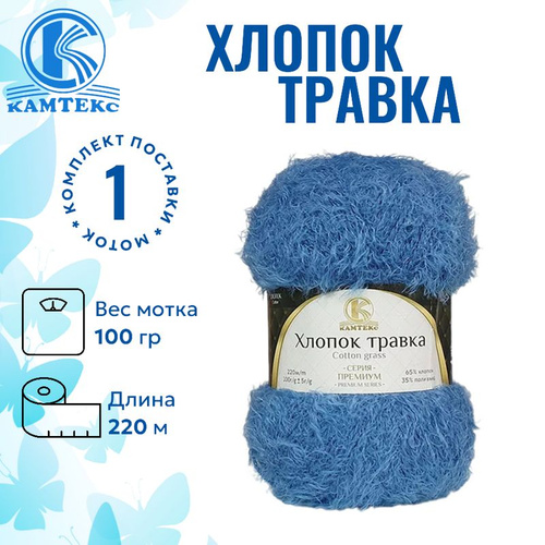 Пряжа Хлопок Травка (Камтекс), 1 моток - 022 (джинса), 65% хлопок, 35% полиамид, (100г, 220м)