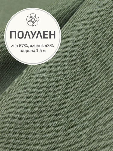 Ткань для шитья(3 м) Полулен цв.Темная сухая трава, ш.1.5м, лен-57%, хлопок-43%, 200гр/м.кв