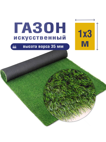 Трава искусственная зеленая ландшафтная 35 мм 3м*1м / искусственный газон в рулонах / рулонный газон