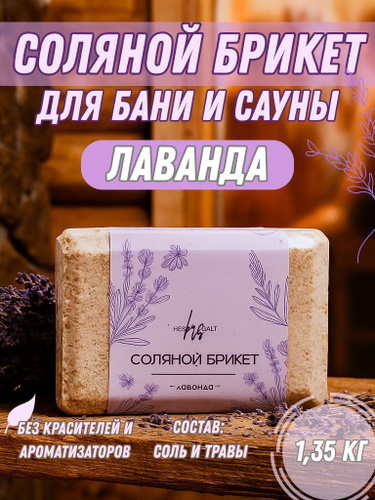Соляной брикет 1,35кг для бани и сауны с травами "Лаванда" соль для бани натуральная