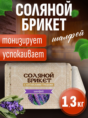 Соляной брикет для бани и сауны "Соляная баня" с алтайскими травами "Шалфей" 1,35 кг