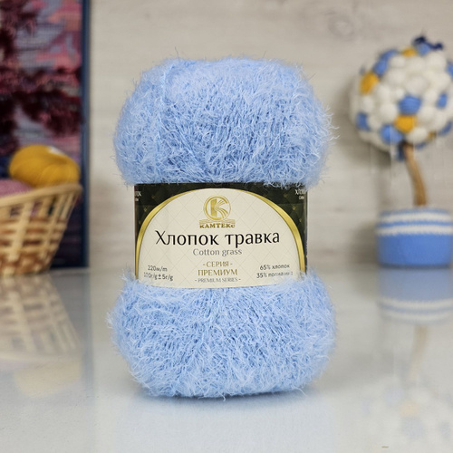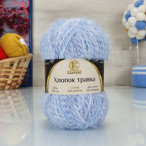 Пряжа Хлопок Травка (Камтекс), 1 моток - 015 (голубой), 65% хлопок, 35% полиамид, (100г, 220м)