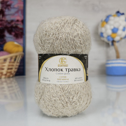 Пряжа Хлопок Травка (Камтекс), 1 моток - 005 (бежевый), 65% хлопок, 35% полиамид, (100г, 220м)
