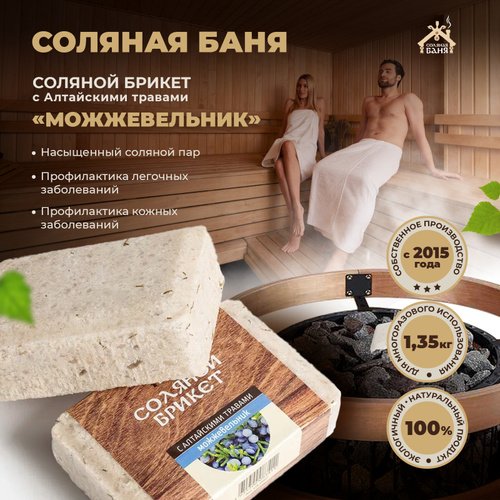 Соляной брикет для бани и сауны "Соляная баня" с Алтайскими травами "Можжевельник" 1,35 кг
