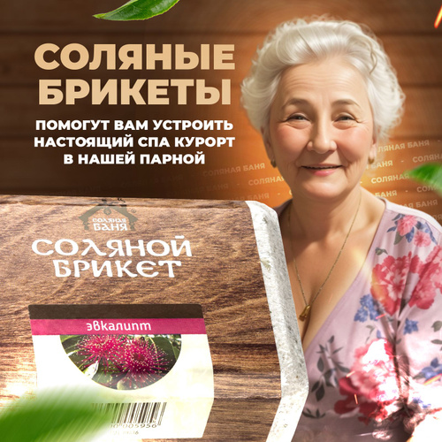 Соляной брикет для бани и сауны "Соляная баня" с Алтайскими травами "Листья Эвкалипта" 1,35 кг