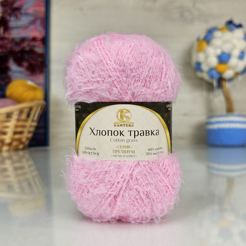 Пряжа Хлопок Травка (Камтекс), 1 моток - 055 (розов.св.), 65% хлопок, 35% полиамид, (100г, 220м)