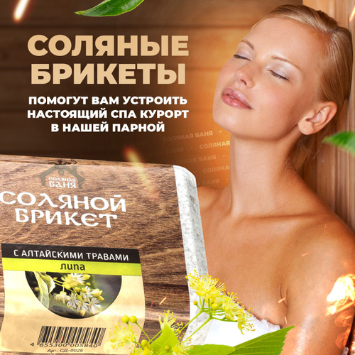 Соляной брикет для бани и сауны "Соляная баня" с Алтайскими травами "Липа" 1,35 кг