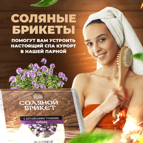 Соляной брикет для бани и сауны "Соляная баня" с Алтайскими травами "Чабрец" 1,35 кг