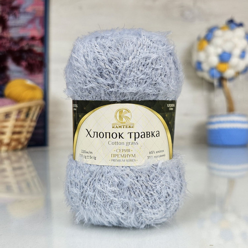 Пряжа Хлопок Травка (Камтекс), 1 моток - 008 (серебристый), 65% хлопок, 35% полиамид, (100г, 220м)