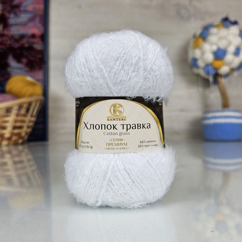 Пряжа Хлопок Травка (Камтекс), 1 моток - 205 (белый), 65% хлопок, 35% полиамид, (100г, 220м)
