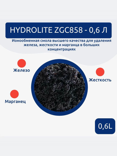 Ионообменная смола 0,6 л Hydrolite ZGC858 засыпка от железа и марганца, загрузка для корпуса фильтра 10SL