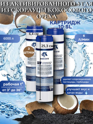 Картридж из скорлупы кокосовых орехов 10'' UNICORN Аквафор Барьер Гейзер Новая вода Уникорн