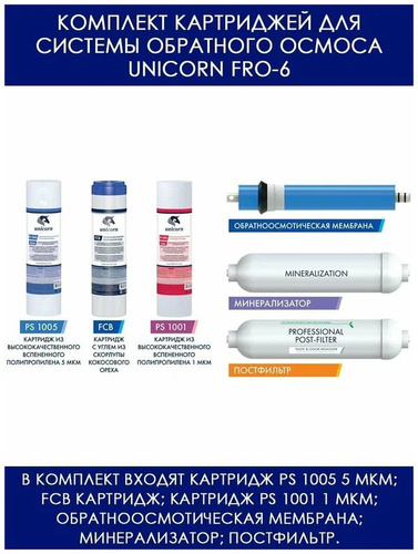 Комплект картриджей для обратноосмотической системы FRO-6 UNICORN (KCB-FRO-6)